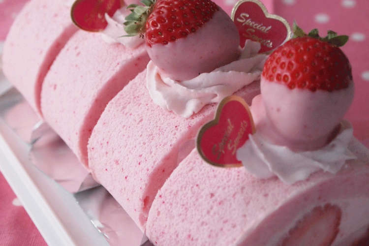シフォン生地で ほんのりピンク 春の苺ロールケーキ レシピ 作り方 By Torezu 楽天レシピ